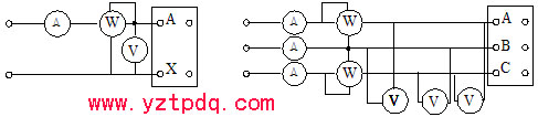 圖1-1 單相變壓器空載試驗接線 圖1-2 三相變壓器空載試驗的直接測量