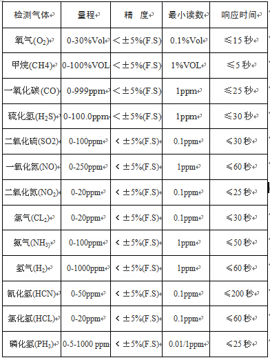 傳感器:氧氣及有毒氣體為電化學(xué)型,可燃?xì)怏w為催化燃燒型