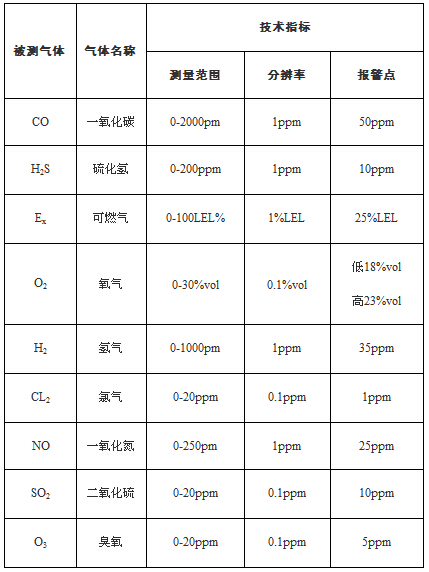 « 檢測氣體類型: 氧氣、可燃?xì)?、一氧化碳等有毒害氣體