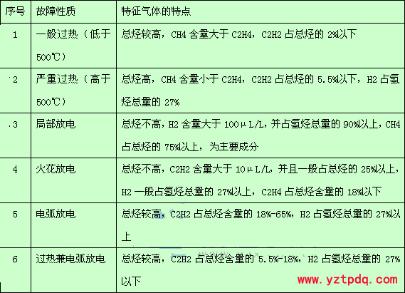 表2-1 判斷變壓器故障性質(zhì)的特征氣體特點