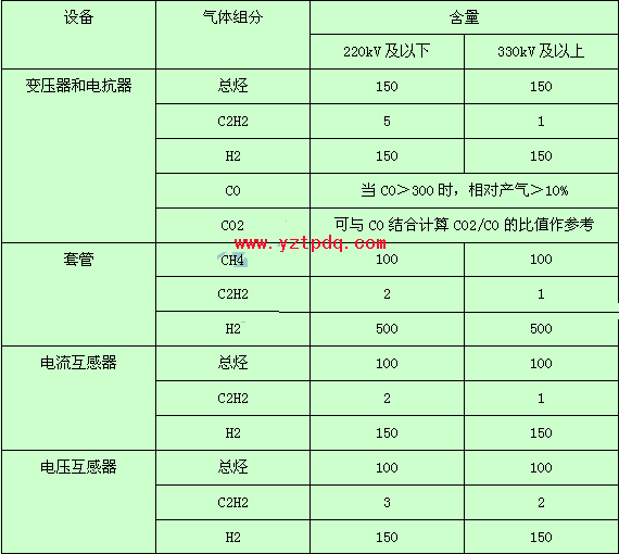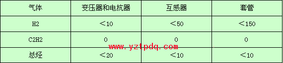 表2-2 對出廠和新投運的設(shè)備氣體含量的要求