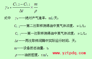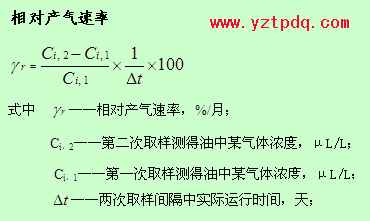 實踐證明,故障的發(fā)展過程是一個漸進的過程,僅由對油中溶解的氣體含量分析結(jié)果的絕對值很難確定故障的存在和嚴重程度。因此,為了及時發(fā)現(xiàn)雖未達到氣體含量的注意值,但卻有較快的增長速率的低能量潛伏性故障,還必須考慮故障部位的產(chǎn)氣速率。