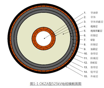 大多電纜采用的是充油電纜,其電纜橫截面如圖1-1所示。其中,中心油管直徑30mm,主絕緣厚度為28.5mm,主絕緣外面有多層金屬護(hù)層,如鉛層、加固層、防蛀層、鎧甲層等。頂外面的外被層厚度為4mm。
