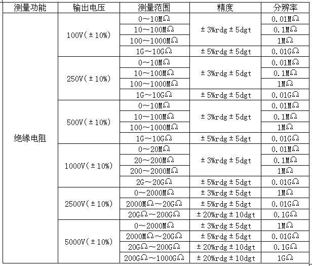 該絕緣電阻測試儀由中大規(guī)模集成電路組成。本表輸出功率大,輸出電壓等級多(有6個電壓等級)。 額定絕緣測試電壓范圍100V~5000V,絕緣電阻測量范圍0.01MΩ~1000GΩ。直流電壓測量范圍0~1000V,交流電壓測量范圍0~750V。