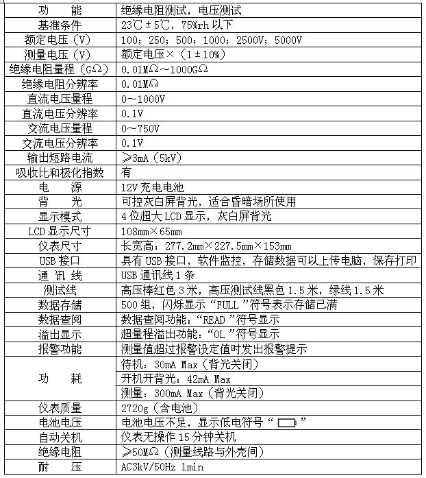 拓普品牌TPGJC-5型絕緣電阻測試儀別稱高壓兆歐表、絕緣電阻表、高壓絕緣電阻測試儀、數(shù)字式絕緣電阻測試儀,主要用于絕緣電阻的測試。本儀器具有LCD大屏幕灰白背光顯示、數(shù)據(jù)存儲、數(shù)據(jù)查閱、報警、自動關機等功能。同時還具備測量直流電壓交流電壓吸收比和極化指數(shù)功能。整機美觀高檔,量程寬廣,分辨率高,操作便捷,攜帶方便,準確、可靠、性能穩(wěn)定,抗干擾能力強。