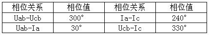 6、三相三線(三相負載平衡時的相位)表格如下: