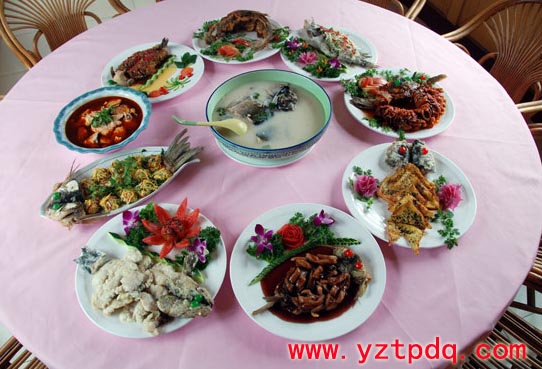 據(jù)說用呼倫湖產(chǎn)的鮮魚和湖蝦,最多可烹制魚菜120多種,一般是12、14、20道魚菜上桌,總名之為“全魚宴”,有鯉魚跳龍門、家常熬鯽魚、梅花鯉魚、油浸鯉魚、松鼠鯉魚、湖水煮魚、魚卷、荷包鯉魚、煎悶白魚等。m.ef2822.com大概還是魚的品種少了,做來做去無非就是那些魚在翻花樣,就像一場戲,由于演員少,一個人往往要頂三四個角色,很是無趣。不過吃過了,抹抹嘴,你得老老實實地承認:“好吃!是好吃!”