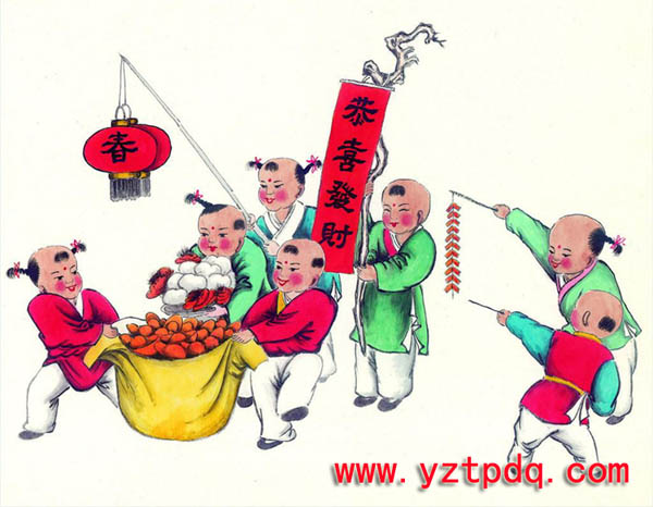 送灶以后,就真正開始了年貨的采購與囤積,貼春聯(lián)、貼門神、貼福字、貼年畫,這些寓意吉祥的大紅色的紙張給新年帶來了無處不在的喜氣與熱情,往往舊式有前后門的房屋會在前門貼春聯(lián),后門貼門神畫——唐朝初年的兩位大將秦叔寶和尉遲公。據(jù)說大門上貼上這兩位門神,許多妖魔鬼怪都會避而遠之,而小孩子們則是對這兩位形象頗有點猙獰的門神既怕又敬、既畏又尊,很是有趣。家里屋內(nèi)的墻壁或房門上貼得都是些喜氣洋洋的年畫,比如麒麟送子、和氣娃娃等,現(xiàn)在的家庭大多以一卷卷漂亮精美的掛歷取代了各種花花綠綠的年畫,而“福”字卻貼得多了起來,那是因為越來越多的商家們愿意在新年貨品中夾上一兩張“福”字作為贈品,“福”字得倒著貼在門或窗戶上,這樣過路的人們看見了,會指著說“福”倒了,那么福就真的要到了哦。