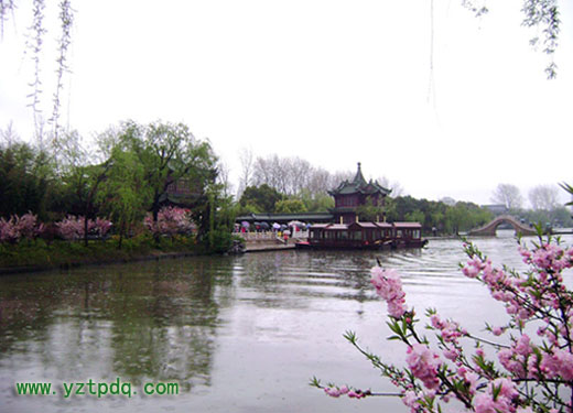 很多地方本來(lái)很美,但是也許旅游旺季時(shí)人多了也沒(méi)有意思,但那天恰好全無(wú)喧囂,沒(méi)有到處飄揚(yáng)的導(dǎo)游旗,沒(méi)有小喇叭的尖叫,就覺(jué)得什么都很好,沒(méi)有一處“視覺(jué)污染”。于是就覺(jué)得二十四橋特別詩(shī)情畫意,覺(jué)得詩(shī)畫長(zhǎng)廊特別舒展開(kāi)闊,覺(jué)得“四橋煙雨”特別清新靜美……這就值得流連又流連了,春意濃濃地化在瘦西湖中,慢慢的泡開(kāi)來(lái),溢了滿湖;而我們,真甘愿在這里沉沉地品這杯泡得恰到好處的春茶。