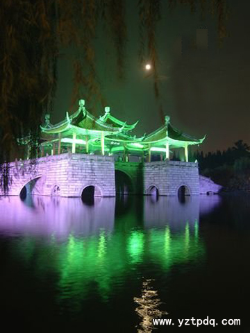 揚(yáng)州曾經(jīng)被稱為月亮城,一首“天下三分明月夜,二分無賴是揚(yáng)州”使揚(yáng)州占去了月亮三分之二的光輝。傳說,中秋夜在揚(yáng)州的五亭橋可以看到15個月亮。
