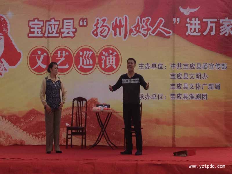 寶應(yīng)縣淮劇團(tuán)的演員們以農(nóng)民朋友喜聞樂見的淮劇形式,展現(xiàn)了愛崗敬業(yè)馬小梅、36年如一日照顧特殘軍人丈夫?qū)O云鳳、十年四救落水者的平民英雄張志成、用孝行和大愛撐起整個家的李順梅以及視腦癱小姑子如親妹、待多病的婆婆勝似親媽蔣長鳳等5位“揚(yáng)州好人”的風(fēng)采。他們精彩的演出博得了現(xiàn)場觀眾的陣陣掌聲。全鎮(zhèn)近千名群眾觀看了演出,通過文藝巡演傳遞了正能量,弘揚(yáng)了新風(fēng)尚。