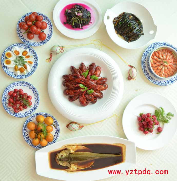 在端午“十二紅”當(dāng)中,還有兩道菜不可或缺,一是紅燒老鵝,再有就是大公雞,意在雞冠為紅色,然而今年的端午有些特別,春時(shí)露頭的一場(chǎng)禽流感使得江浙滬一帶禁止銷(xiāo)售雞鴨鵝,餐館酒店里也見(jiàn)不著禽類(lèi)的蹤影。好在民間的智慧無(wú)窮,在拍攝制作這一期端午十二紅時(shí),想到用橫掃揚(yáng)州整個(gè)夏天的小龍蝦來(lái)替代。至于民間的十二紅,豐儉由人,只要那么關(guān)鍵的幾樣,心意到便好。