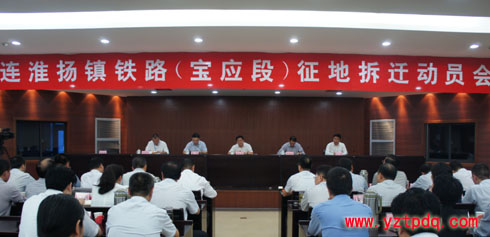 為加快連淮揚(yáng)鎮(zhèn)鐵路(寶應(yīng)段)建設(shè)步伐,保障項(xiàng)目順利實(shí)施,9月30日,江蘇寶應(yīng)縣委、縣政府專題召開連淮揚(yáng)鎮(zhèn)鐵路(寶應(yīng)段)征地拆遷動(dòng)員會(huì)??h委副書記、代縣長(zhǎng)王逍霄在會(huì)議上要求,要圍繞“高”、“嚴(yán)”、“快”三個(gè)字,做好征地拆遷工作。縣委常委、常務(wù)副縣長(zhǎng)張偉主持會(huì)議,副縣長(zhǎng)閆偉參加,市鐵辦主任尹建平、中鐵十九局集團(tuán)連淮揚(yáng)鎮(zhèn)鐵路項(xiàng)目指揮長(zhǎng)劉宏圖應(yīng)邀出席會(huì)議。