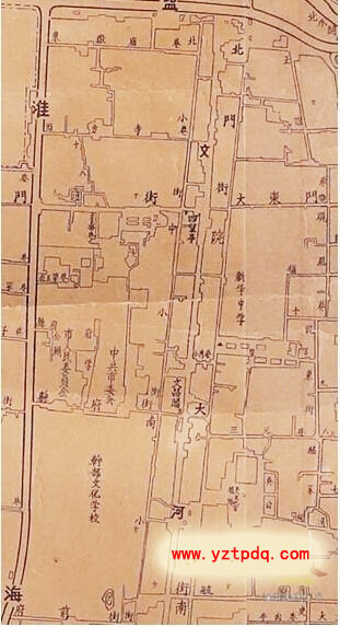 小編查找志書(shū)中地圖發(fā)現(xiàn),位于府衙、縣衙的東面,從舊城北門(mén)水關(guān)至南水關(guān)的這段市河,沿河附近設(shè)有縣學(xué)(現(xiàn)揚(yáng)大附小址)、文魁樓(今四望亭)、文廟(今政協(xié)),河上架有文津橋,橋上有文昌閣,上曾懸有“邗上文樞”匾額……揚(yáng)州的各類文化殿堂都緊臨這段市河。相傳在古代這段市河被視為文脈,因此這段市河在民間被稱為“文河”。