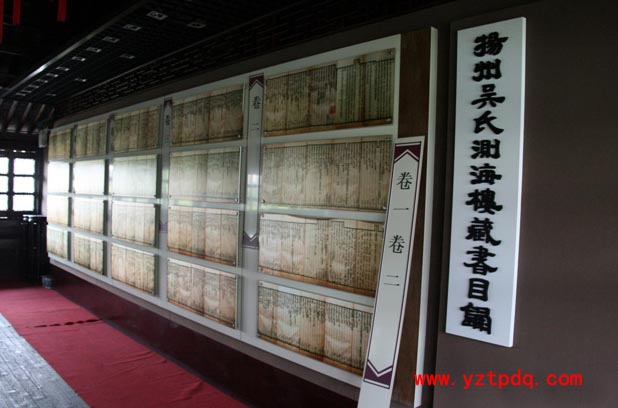 吳道臺(tái)宅第早在籌建之時(shí),吳引孫就指示在宅地內(nèi)仿寧波“天一閣”的結(jié)構(gòu)建“測(cè)海樓”。百年之后,作為吳道臺(tái)宅第的重要組成部分——測(cè)海樓以江南現(xiàn)存私人藏書樓“遺世而獨(dú)立”。吳引孫一生酷愛(ài)書籍,當(dāng)年他每購(gòu)置一部書就作一記錄,記下所購(gòu)書的卷數(shù)、函數(shù)、購(gòu)買的錢數(shù),精心蓋上“真州吳氏有福讀書堂”的藏書印,還組織人將這些書統(tǒng)統(tǒng)編為一部書目,題名為《揚(yáng)州吳氏測(cè)海樓藏書目錄》,并刻印成書。