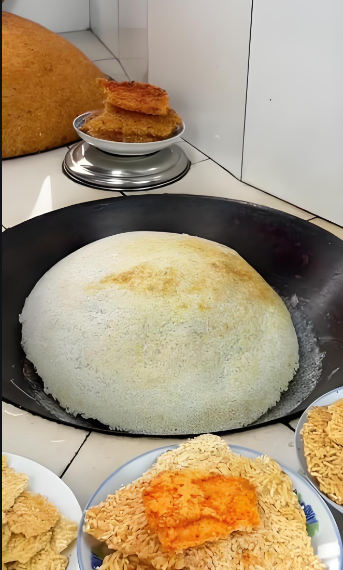 江蘇里下河一帶盛產(chǎn)水稻,大米飯是當(dāng)?shù)厝说闹魇常罪堝伒滓淮髩K鍋巴又香又脆。